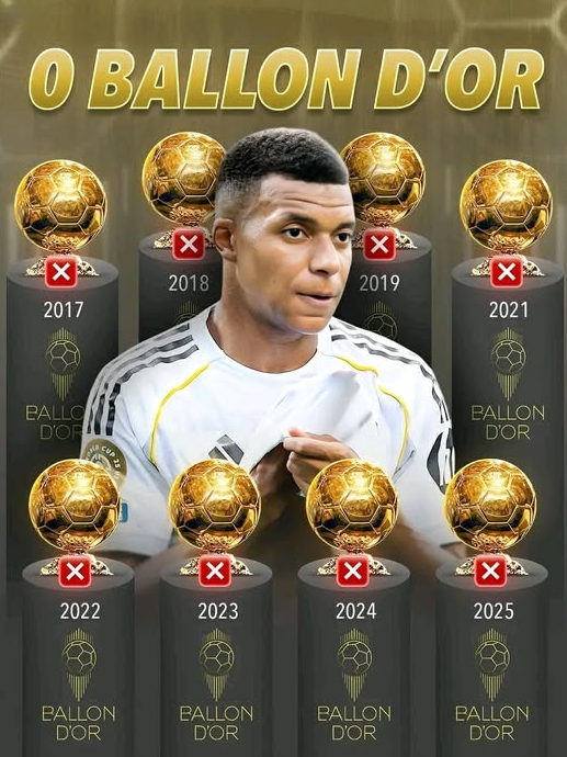 The selections for the 2025 Ballon d'Or and FIFA The Best have both concluded, and Mbappé once again missed out on these two major individual awards, ranking 7th for the Ballon d'Or and 3rd for FIFA The Best.