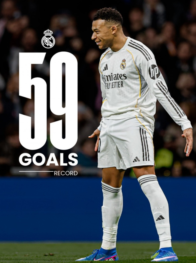 Following Real Madrid's 2-0 victory over Sevilla in the 17th round of La Liga, the club's official social media channels released a commemorative poster to celebrate a historic achievement by Kylian Mbappé. By converting a crucial penalty during the match, Mbappé reached a total of 59 goals for Real Madrid within the 2025 calendar year.