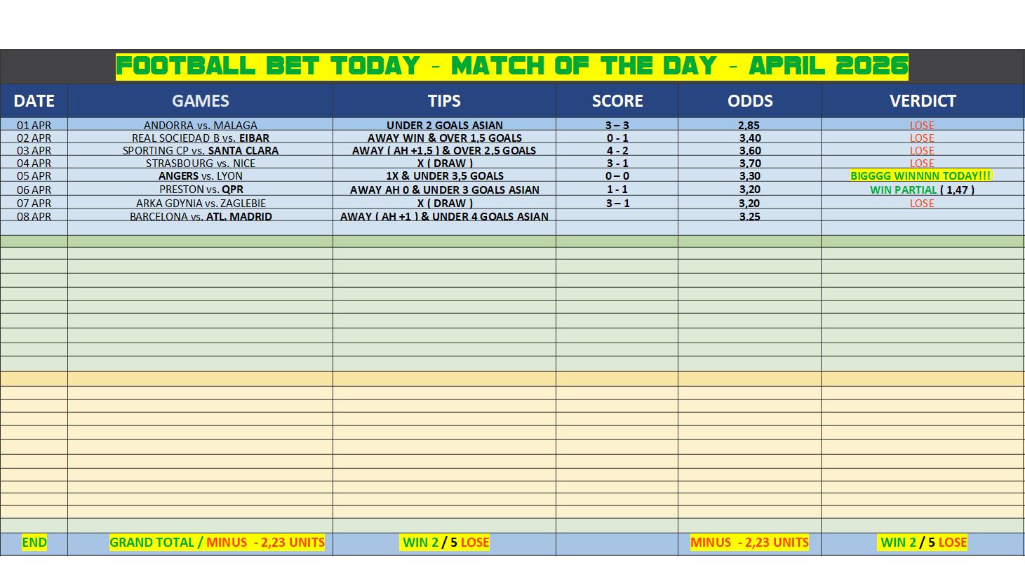 Our choise for this match is ATL. MADRID AWAY WIN ASIAN HANDICAP ( AH +1 ) & UNDER 4 GOALS ASIAN